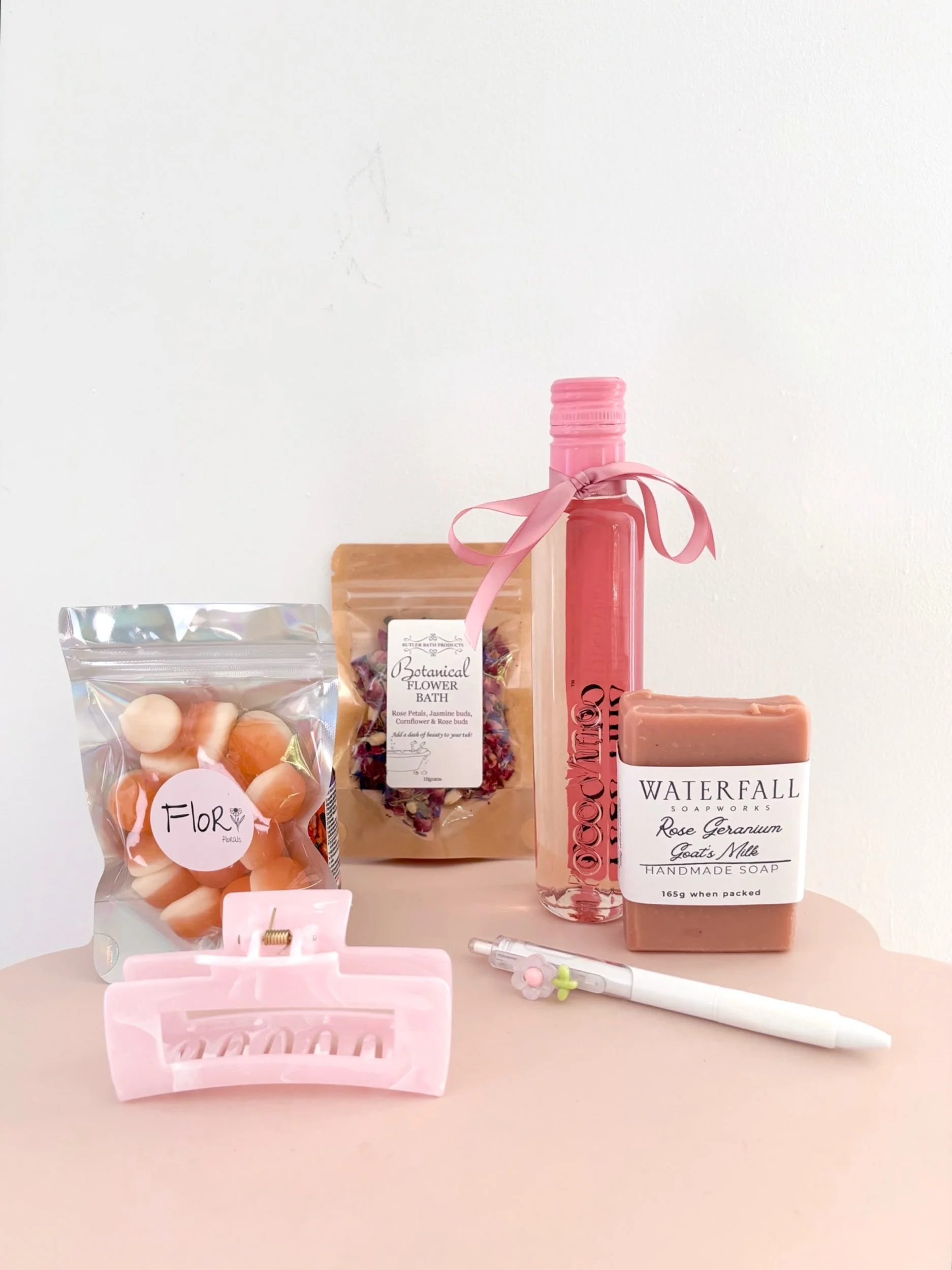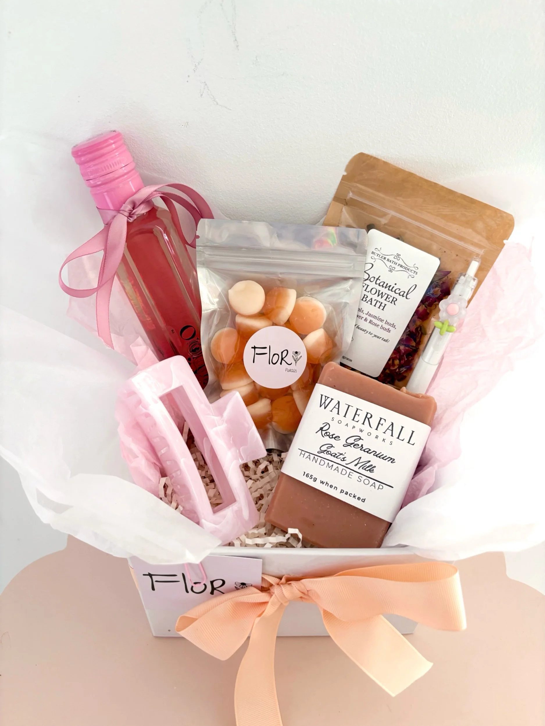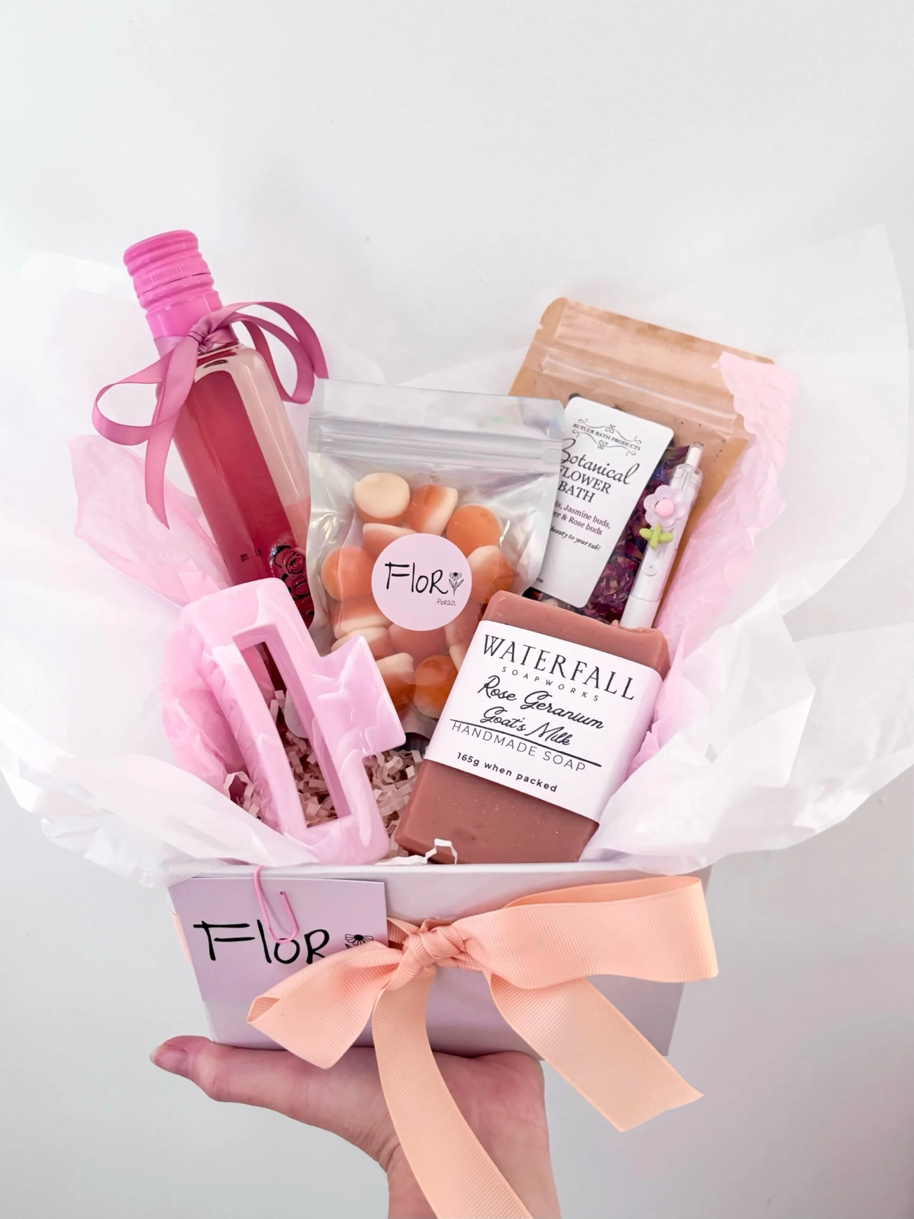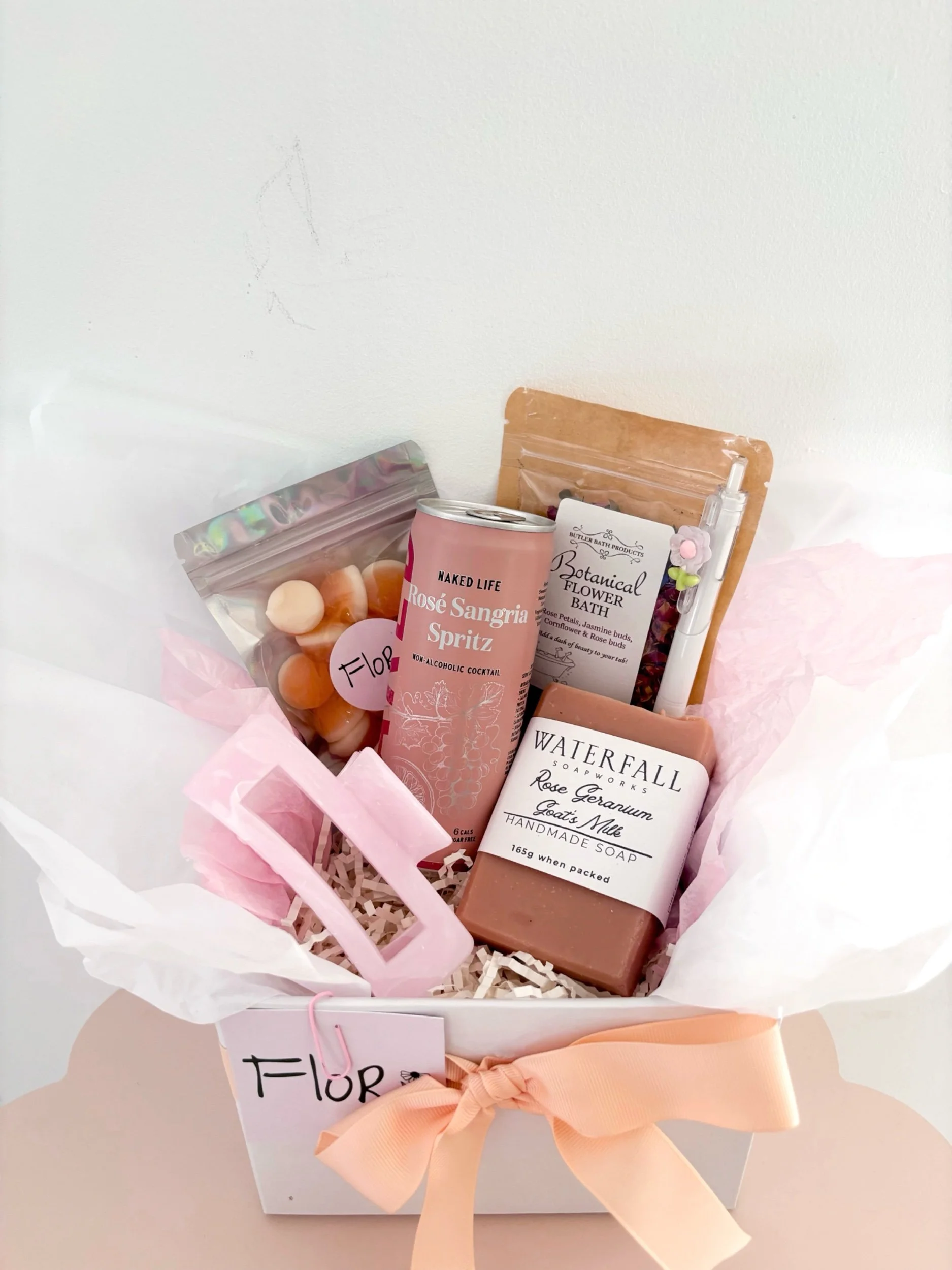 This thoughtfully designed box features a blend of self-care indulgences and sweet treats. With its soft pink tones and elegant presentation, it’s the perfect gesture for birthdays, thank-yous, new mums, or just because.