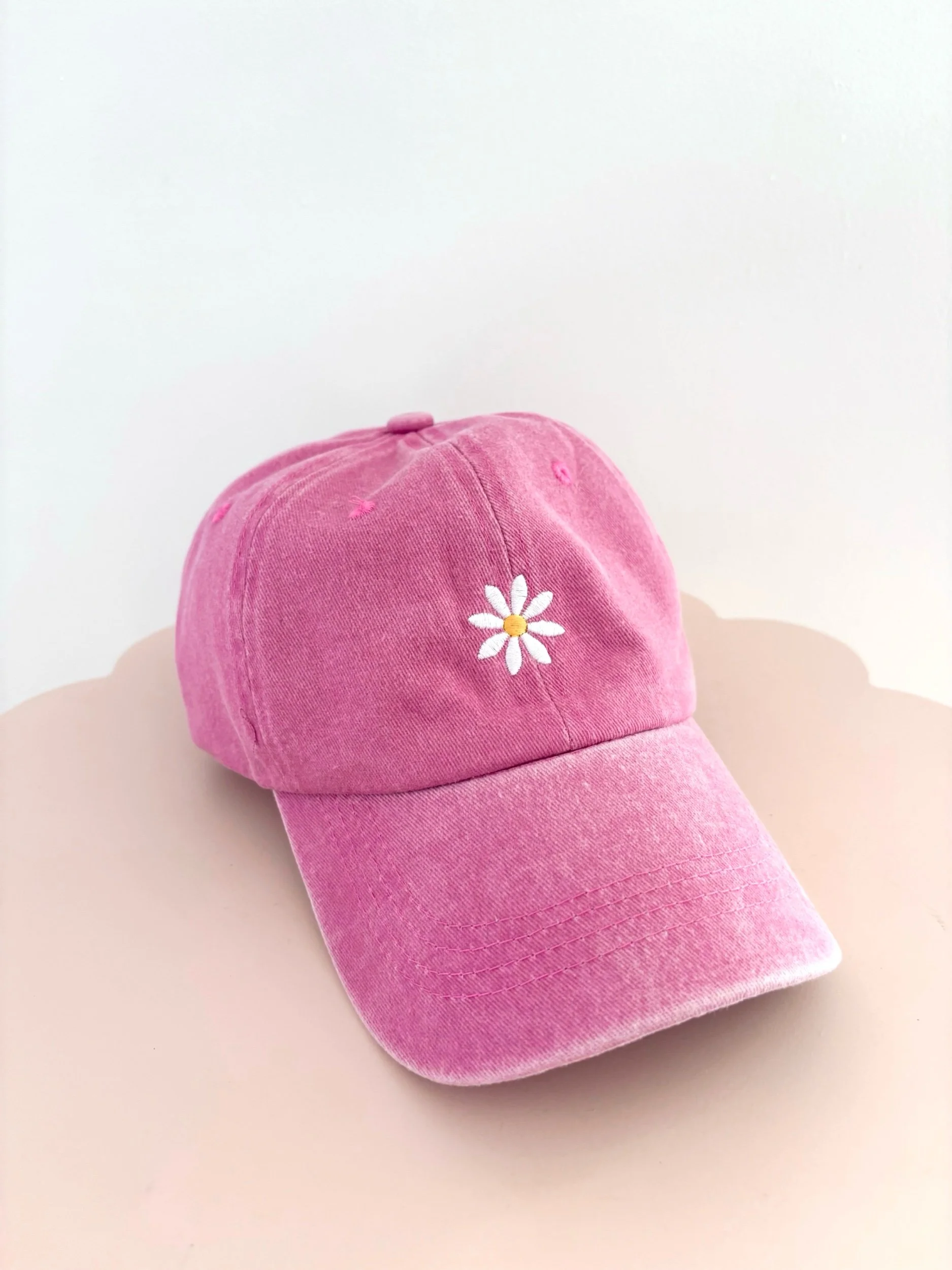 Bright, fun, and effortlessly cute, this Pink Daisy Cap is the perfect way to add a touch of cute floral to your everyday look. Made from soft, washed cotton in a beautiful dusty pink tone, it features a simple embroidered daisy for that cute Flor Florals vibe.